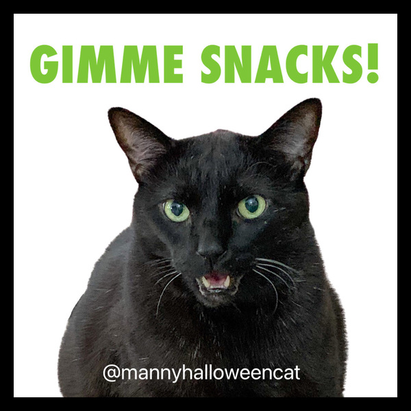 Manny Halloween Cat “Gimme Snacks!” sticker