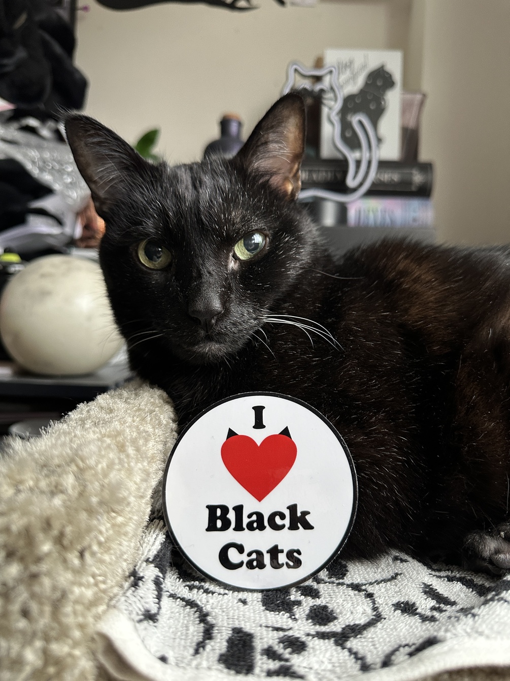 If you love black cats, tell the world! Grab our new sticker or magnet--or get them BOTH as a bundle for a special discounted price.