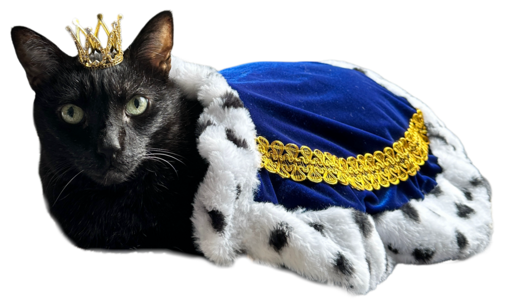 One of Manny's favorite Halloween costumes is this king outfit. He's the king of our house, and he knows it--but this costume helps remind everyone else who the king is! 😹